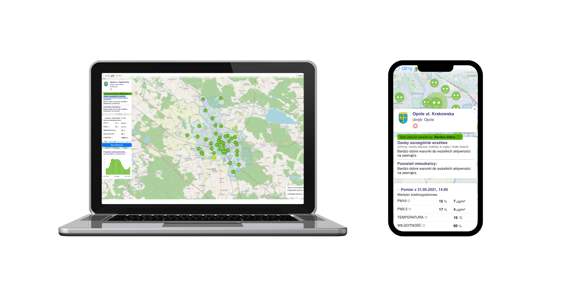 - Dedicated platform and mobile application, so that each resident of Opole has unlimited and free access to up-to-date measurement data.