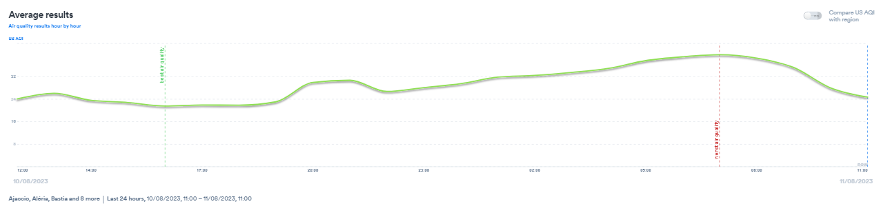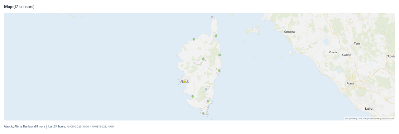 Average measurement results from stations in Corsica in the Airly Data Platform panel