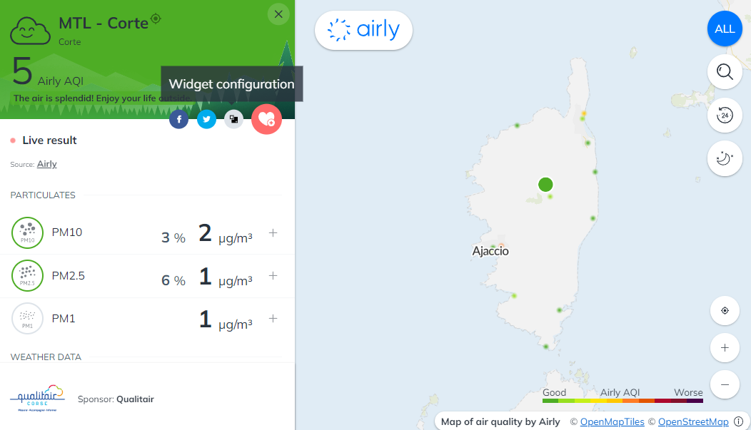 Check the current air quality in Corsica on the Airly map
